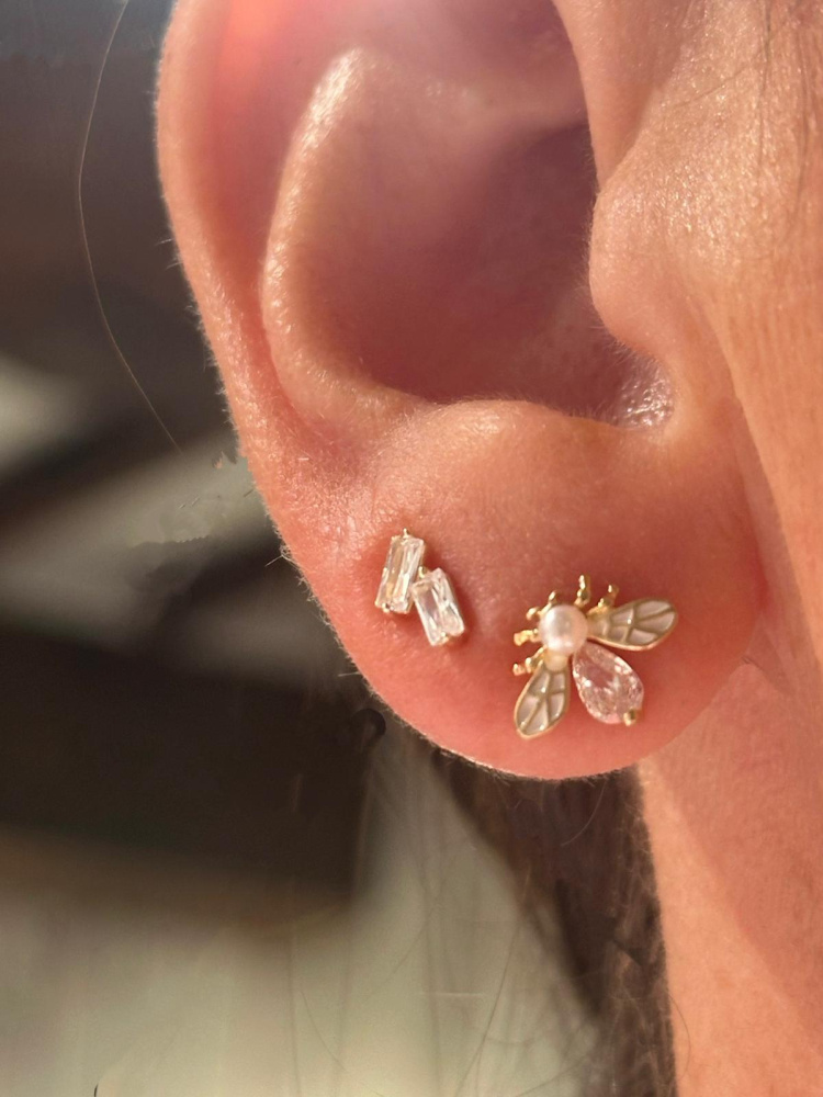 ORECCHINO A LOBO APE CON PERLE NATURALI E ZIRCONI TAGLIO BAGUETTE