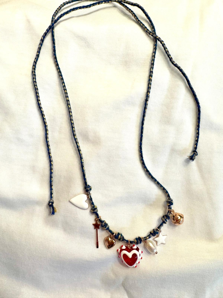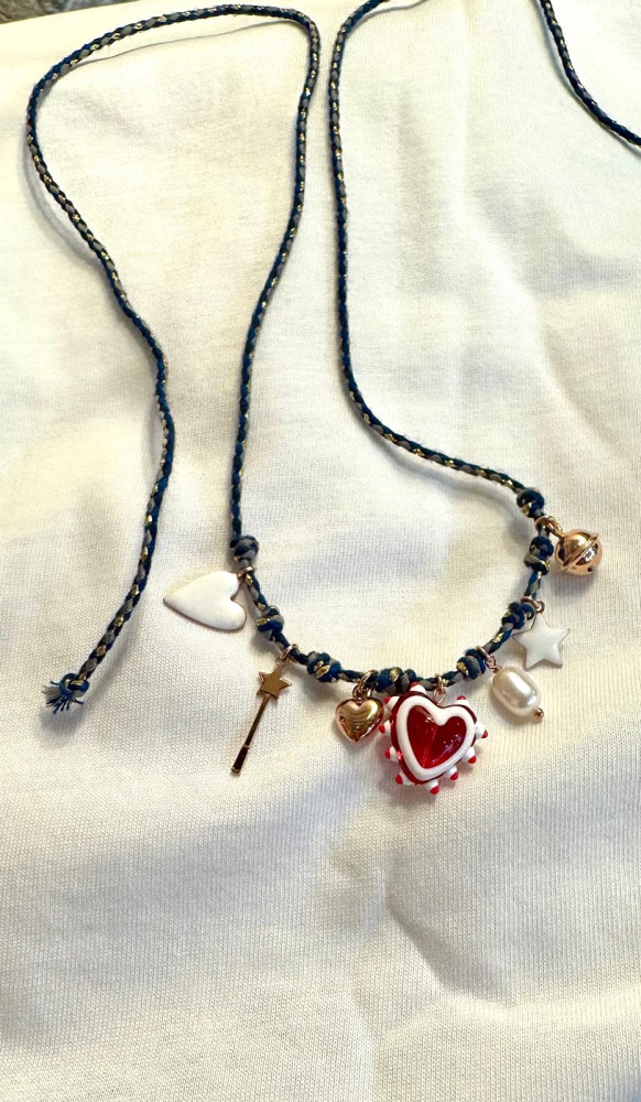 Un gioiello unico che racconta una storia di stile e tradizione. Questo girocollo è realizzato a mano con cura e passione, impreziosito da delicati charms in ceramica smaltata, ognuno modellato e dipinto artigianalmente e charms in argento925.
