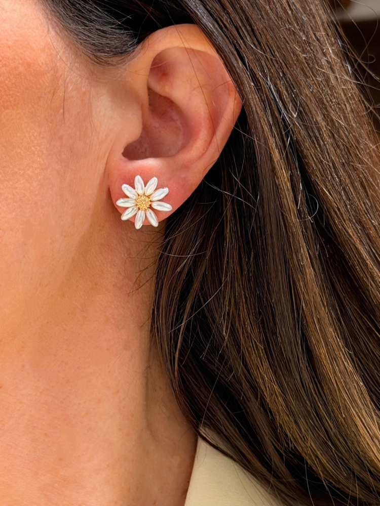 COPPIA DI ORECCHINI A FORMA DI MARGHERITA CON PERLE SHELL.