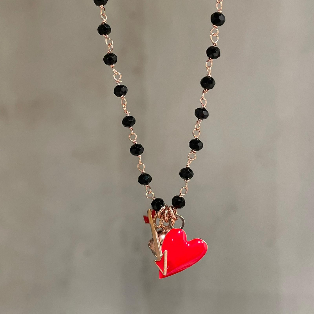GIROCOLLO ROSARIO NERO TRE CHARMS
