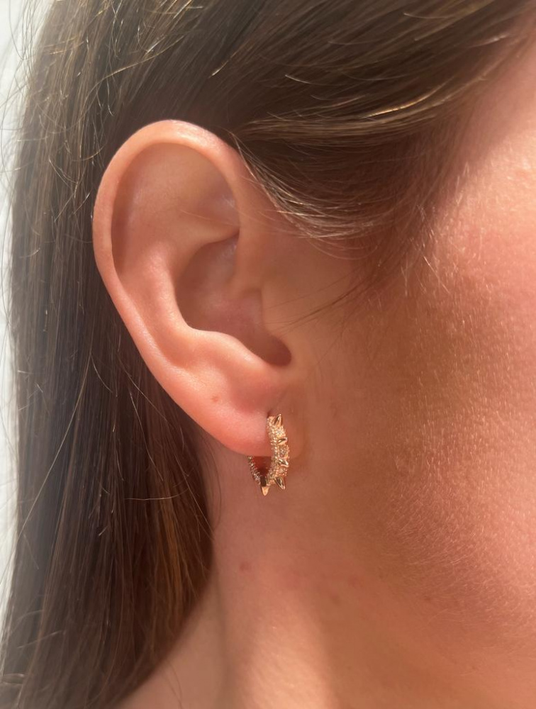 ORECCHINO A SCATTO IN ARGENTO 925 BAGNO ORO ROSA CON MICRO PUNTE E MICRO PAVE' DI ZIRCONI BIANCHI