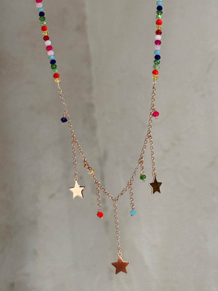 GIROCOLLO PIETRE DURE COLORATE E STELLINE PENDENTI