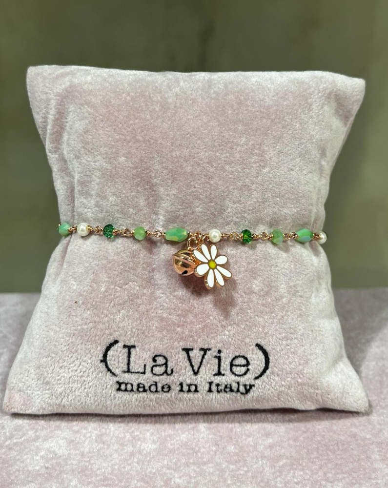 BRACCIALE ROSARIO PIETRE DURE SFUMATE VERDI E PERLE MONTATE MANUALMENTE SU CATENA IN ARGENTO 925 BAGNATA E CHARM SMALTATO O GLITTERATO.
