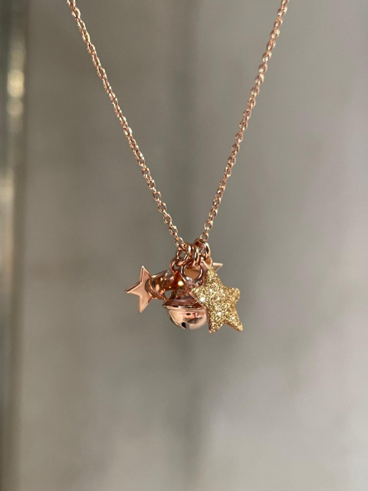 GIROCOLLO CON TRE CHARMS : STELLA COMETA, CAMPANELLINO E STELLA GLITTER (PUOI SCEGLIERE IL COLORE DI QUEST'ULTIMA)