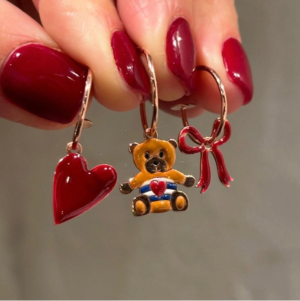ORECCHINO MICRO CERCHIO CHARM : Cuore allungato smalto ROSSO