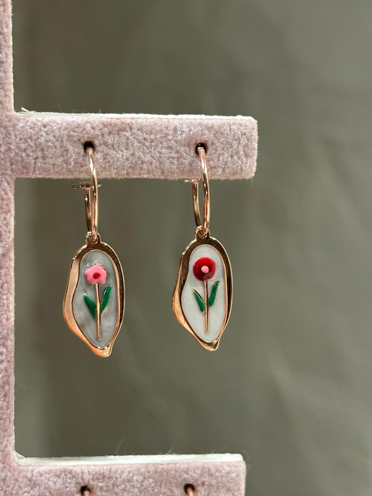 UNA DELICATA PIASTRINA COMPLETAMENTE DIPINTA A MANO DAI NOSTRI ESPERTI ARTIGIANI ORAFI ITALIANI ABBINATA AL NOSTRO ORECCHINO CERCHIO A FILO CON PERNO E FARFALLINA.