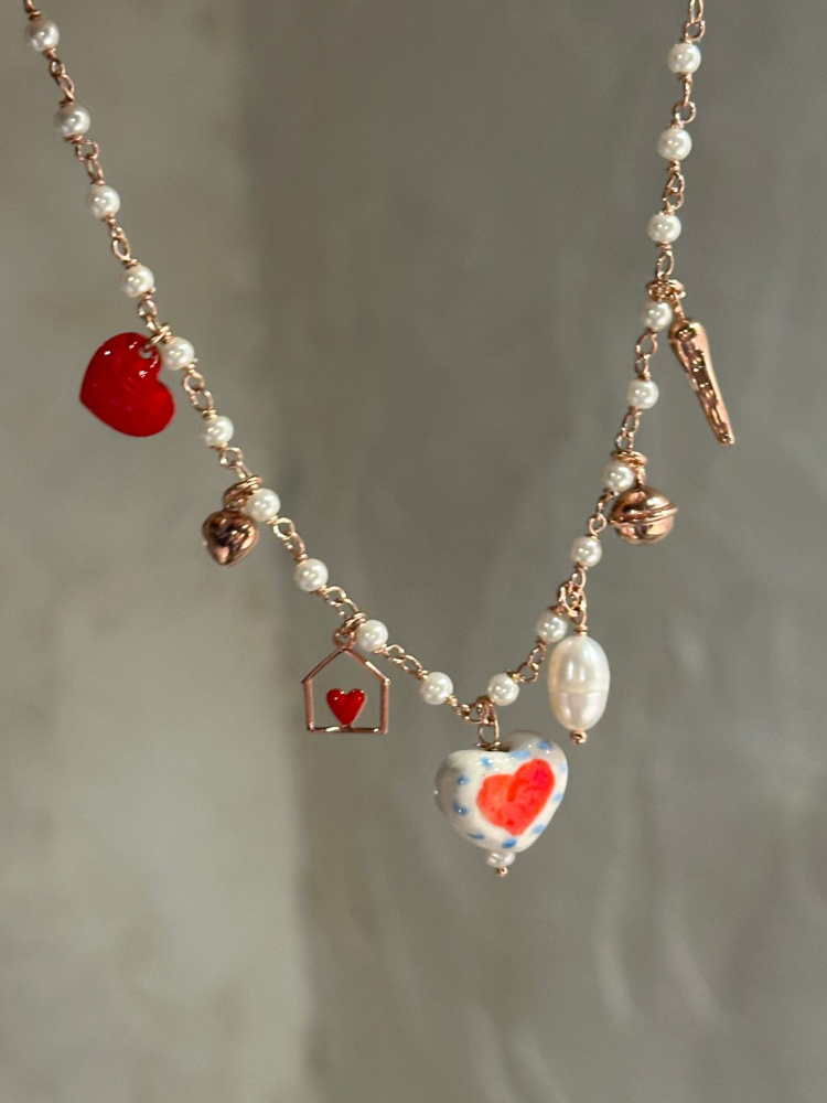 GIROCOLLO ROSARIO MULTICHARMS CUORE CERAMICA